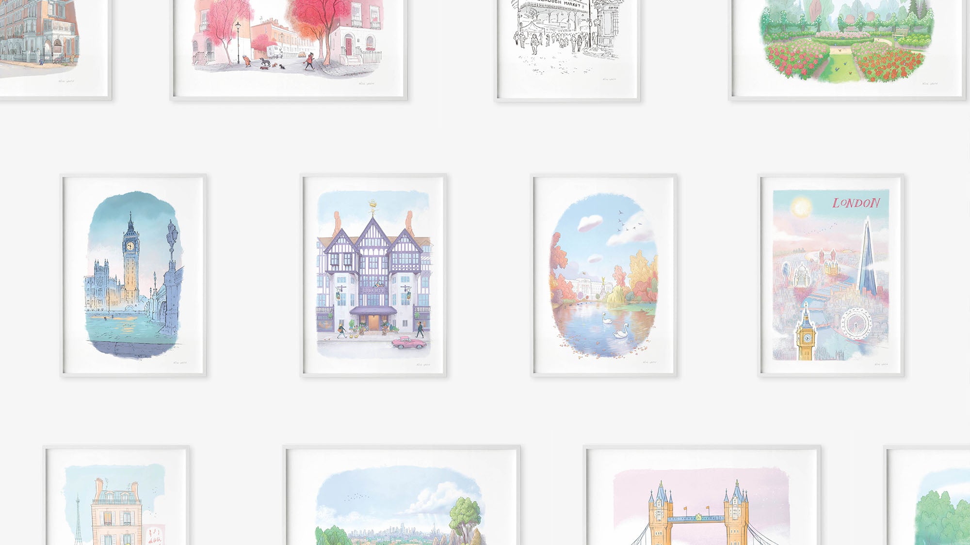 'Three Cats, One Dog and a Parakeet' London Art Print